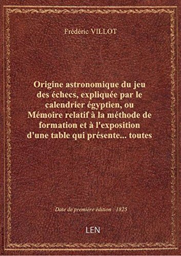 Origine astronomique du jeu des échecs, expliquée par le calendrier égyptien, ou Mémoire relatif à l Livres en ligne.